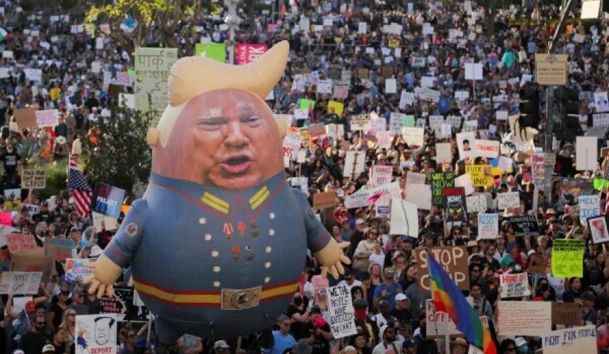 Masivas marchas se realizaron en diferentes puntos de Estados Unidos contra el presidente Donald Trump y Elon Musk. Organizadas bajo el lema "¡Manos fuera!" por un movimiento a favor de la democracia, las manifestaciones recorrieron las capitales de los Estados de este a oeste.