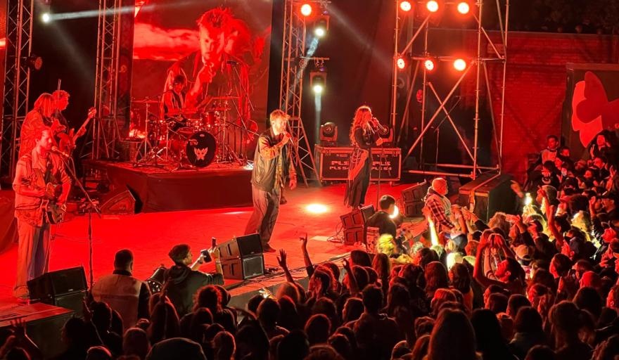 A lo largo de la noche, una innovadora puesta en escena con tres pantallas de video acompañó guitarras, vientos y la potente voz de Sebastián Andersen. El momento más emotivo llegó cuando Andersen invitó al escenario a las integrantes de la Cooperadora.