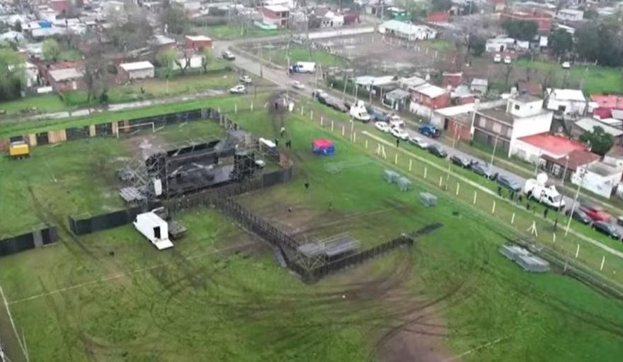 Infraestructura deficiente: El predio es una cancha de fútbol barrial que carece de la infraestructura mínima para un evento masivo.