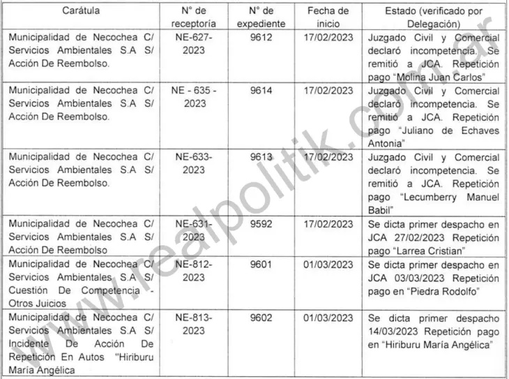 • Acciones Tardías: Recién después de las observaciones del Tribunal, la Municipalidad inició procesos de repetición (Acción de Reembolso) ante el juzgado Contencioso Administrativo de Necochea.