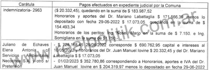 El Tribunal detalla que la municipalidad abonó sumas millonarias, con pagos significativos que superaron ampliamente lo que le correspondía por ley.