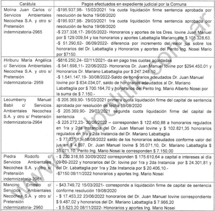 El caso se centra en los pagos de juicios por un incendio ocurrido en 2009 en el predio de disposición final de residuos, concesionado a la empresa Servicios Ambientales Necochea SA.