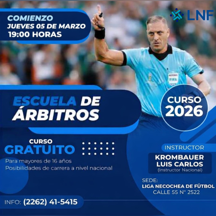 La capacitación comenzará el jueves 5 de marzo a las 19, en la sede de la Liga ubicada en calle 55 N° 2522, y será dictada por el Instructor Nacional Luis Carlos Krombauer, quien brindará contenidos teóricos y prácticos orientados a la formación integral de nuevos árbitros.