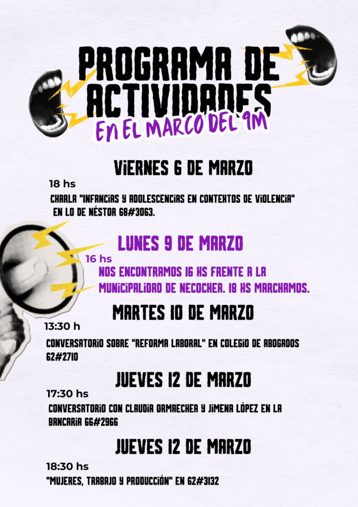 8M en Necochea: amplio cronograma de actividades