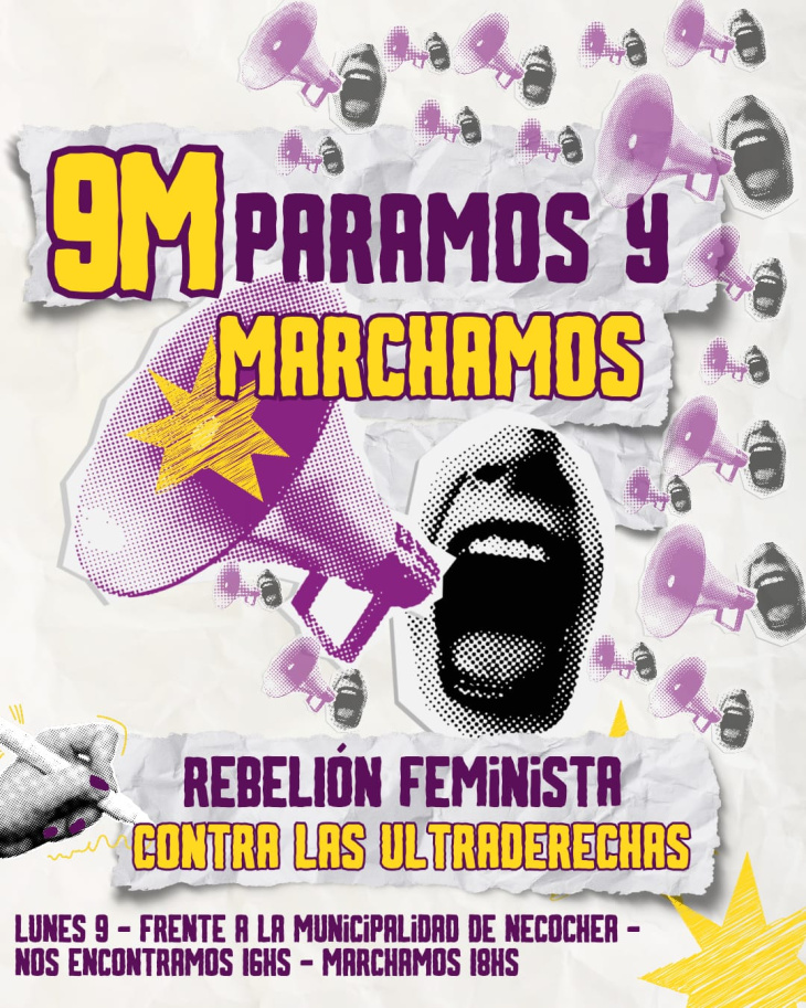Este lunes 9 de marzo, el movimiento feminista y transfeminista de Necochea y Quequén volverá a ocupar las calles en el marco del Día Internacional de las Mujeres Trabajadoras. La concentración será a las 16 en Plaza Dardo Rocha, frente al municipio, y la marcha iniciará a las 18 por el microcentro.