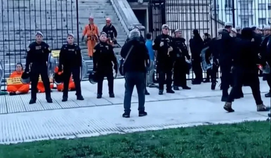 🟣DETUVIERON A SIETE ACTIVISTAS DE GREENPEACE POR TREPARSE AL MONUMENTO DE LA PLAZA DE LOS DOS CONGRESOS