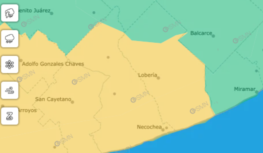 El Servicio Meteorológico Nacional (SMN) elevó a "Nivel Amarillo" la alerta para Necochea, Quequén, Lobería y San Cayetano, advirtiendo sobre fenómenos climáticos que podrían ser peligrosos.