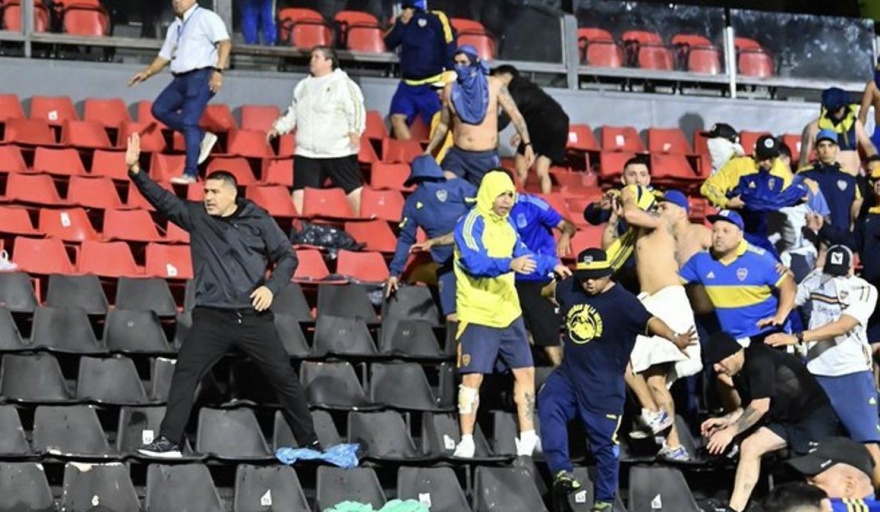 Incidentes en las tribunas: enfrentamientos entre hinchas de Boca y Gimnasia obligan a intervenir a la policía y a Riquelme